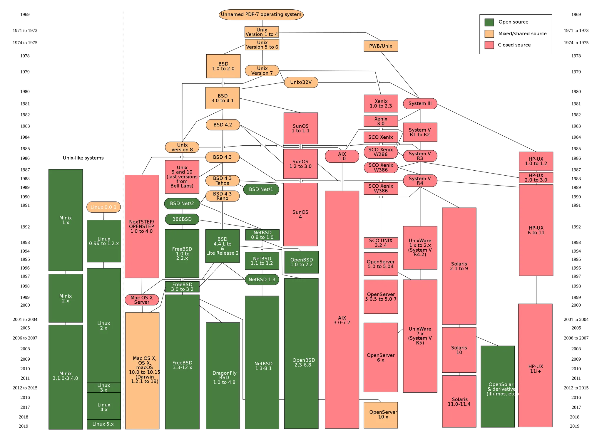 아래 그림에도 마찬가지로 MacOS는 유닉스 계열이 아닌 유닉스로 분류되고 있다(참고4).