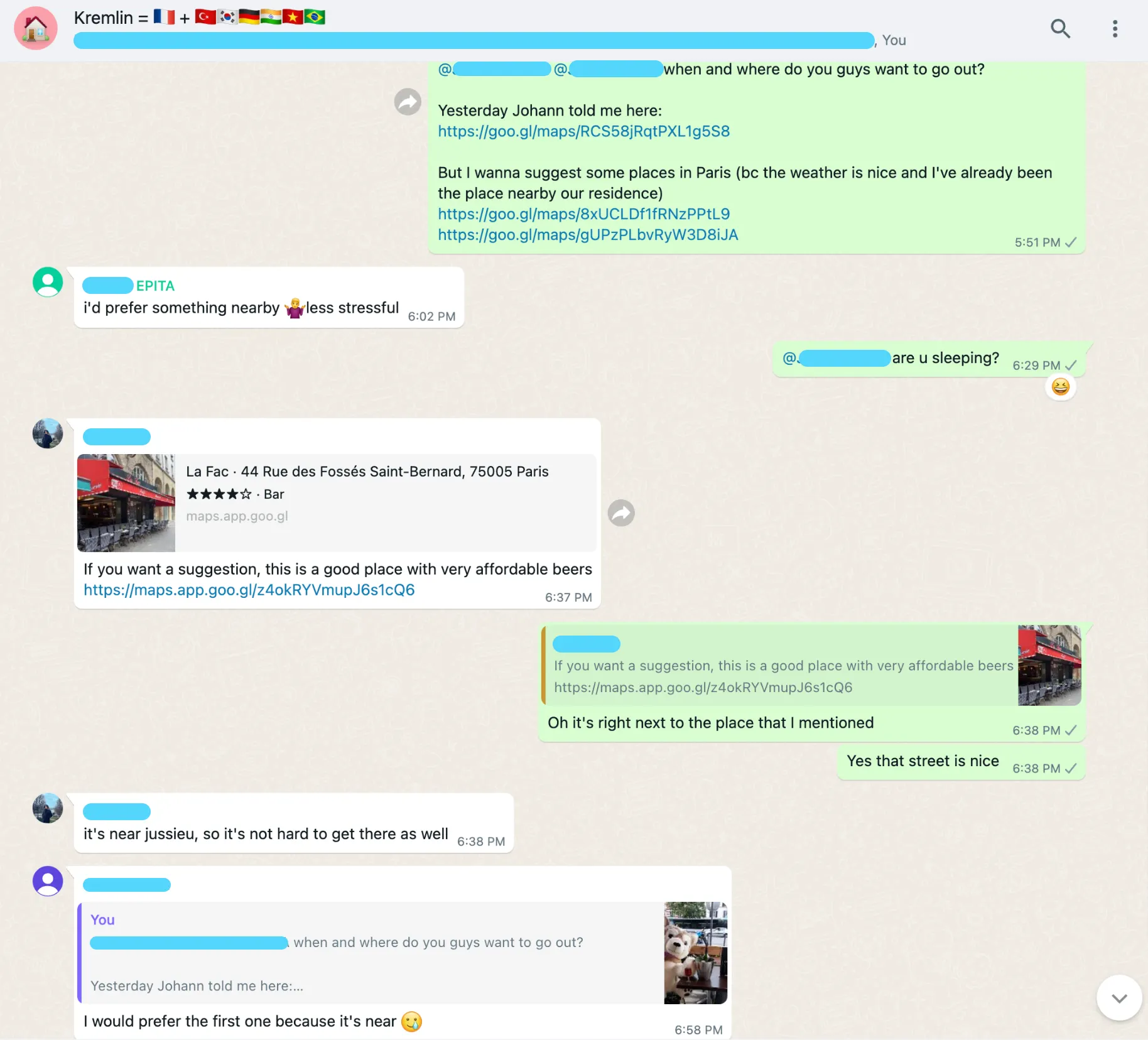오늘, 동아시아라는 문화권과 한국의 문화에 관심가지는 친구들뿐 아니라 중국 친구와 나 사이에는: 과거에 잠깐 공부했었던 중국어와 한국에서 많이 도전해 먹어 보았던 중국 음식들이라는 매개체가 있었고, 인도 친구와 나 사이에는: 내 룸메이트가 인도 사람이기 때문에 함께 먹으러 갔던 음식들과 음식을 먹는 방법에 대해 기본적으로 알고 있었던 지식 등이 종합적으로 이 친구들과 이야기할 수 있는 소재가 되었다. 그래서 우리는 조금 더 빨리 가까워질 수 있었고, 여행을 다니라는 이유도 이것이 아닐까 싶다. 이 교환학생이 끝나고, 프랑스를 속속들이 이해하고 구석구석 방문하려고 노력한 나는 프랑스 사람과 빠르게 친해질 수 있지 않을까.