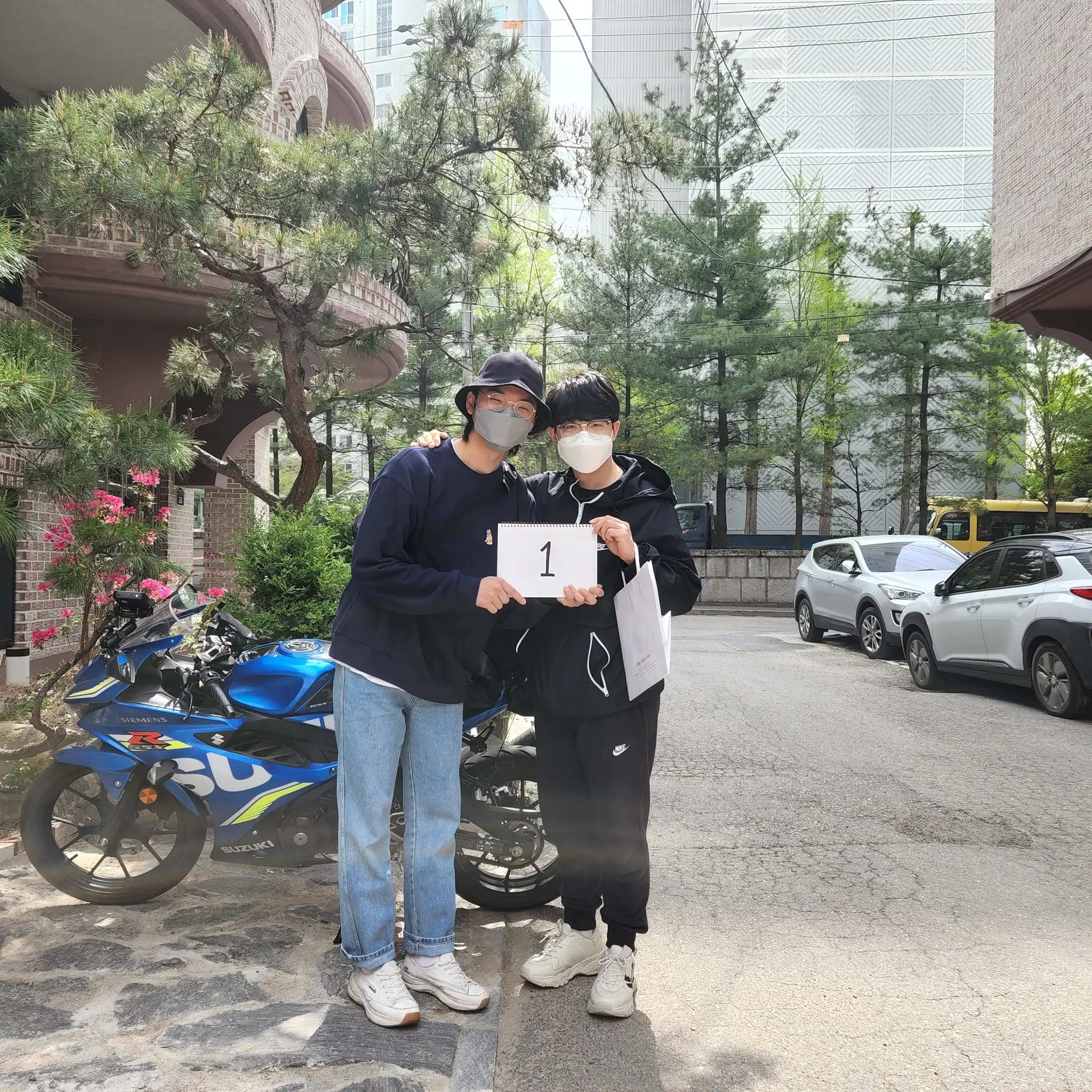 양재에서 꼬박 한시간 더 운전을 하고 수원에 무사히 도착해서 밥 먹으러 가려고 길가에 바이크를 잠깐 세워두었는데, 바이크에 달려있는 아주 비싼 보조배터리를 누가 홀랑 훔쳐가버렸더라고! 첫날부터 손해를 봐서 기분이 찝찝했지만, 이 친구가 고맙게도 자기 자취방에서 자고 가도 좋다고 해서 숙박비인 셈 치기로 마음먹었어. 청하에 육회도 맘편히 먹을 수 있었던 첫날이 됐어.